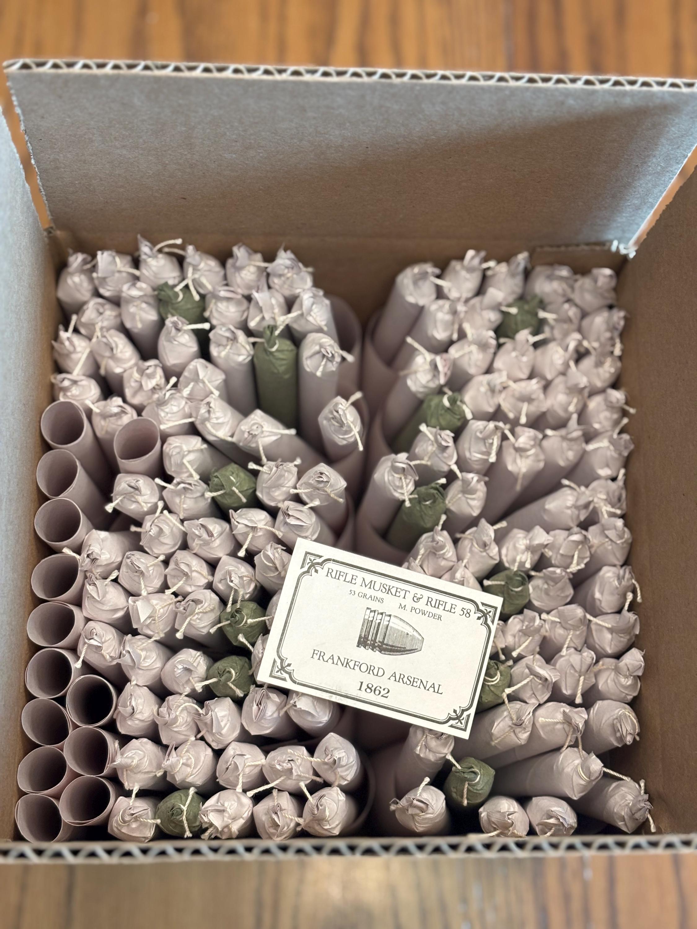 Create historically accurate Civil War arsenal packs with this expanded Deluxe Arsenal Pack Quick Kit, now featuring Type I Williams Cleaner Rounds made with authentic‑looking green cartridge paper. Perfect for reenactors, living‑history interpreters, and collectors who want their displays to look period correct.